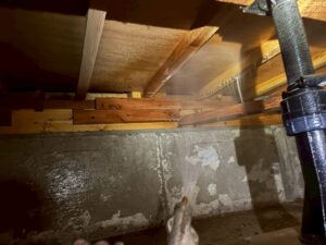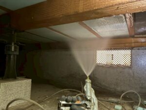 床下の空間へ全体的に薬剤を散布します。