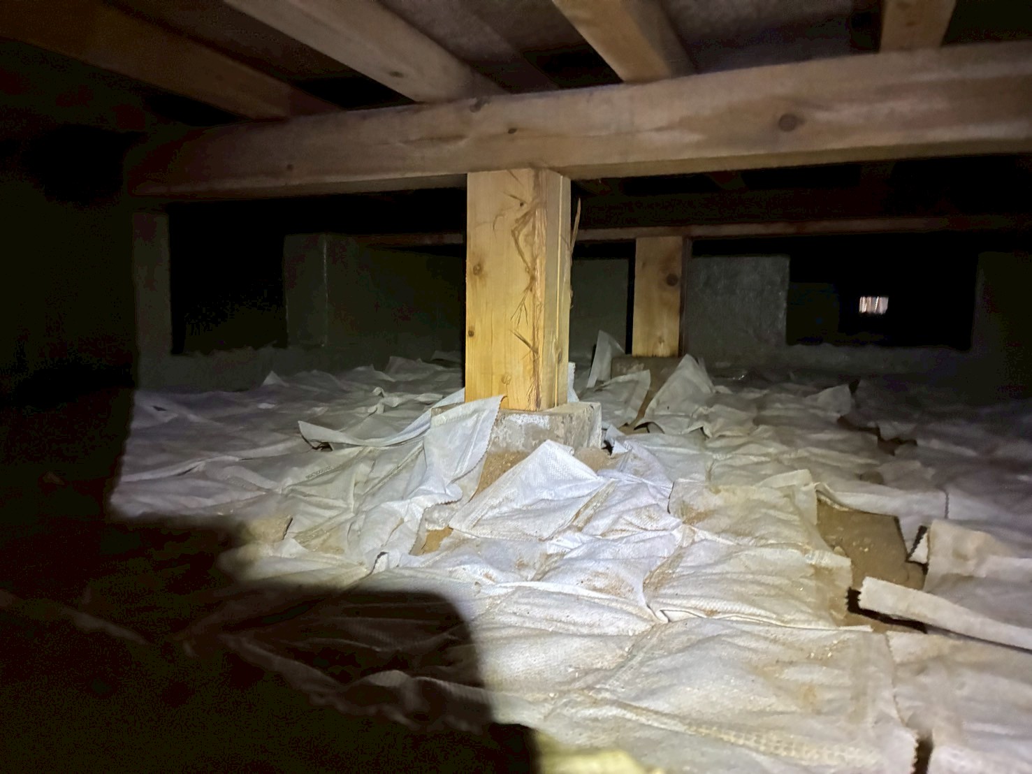 元々敷かれていた白い座布団のようなものは、7年前に他社様が設置した「調湿マット」というもの。