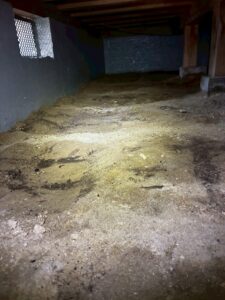現場に赴き床下を確認したところ、湿気が非常に高い状態でした。