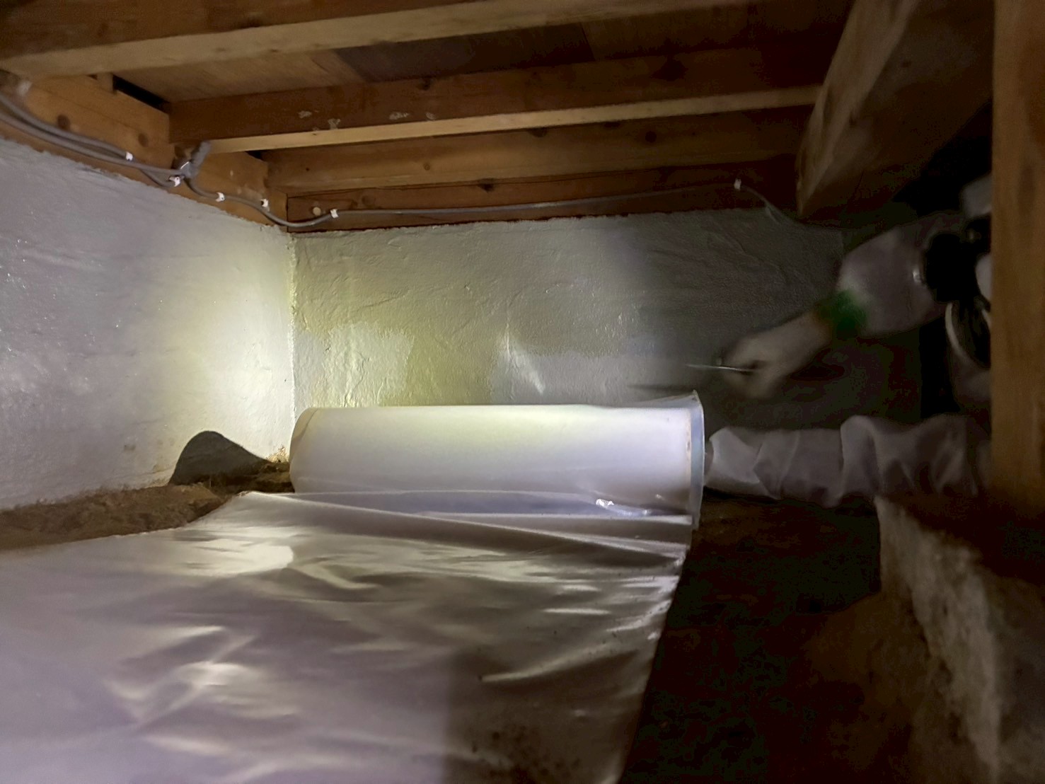 薬剤散布が済んでいるので、調湿シートをきっちりと敷き込み、ゼオライトと調湿シートのダブル使いで湿気を除去。