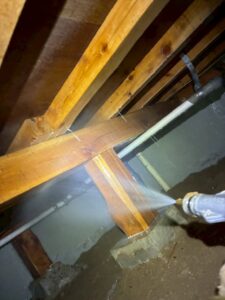 こちらのように、土壌のカビの増殖もひどかったため、まず、カビを取ったのちに防蟻処理の薬剤散布と注入を行います。
