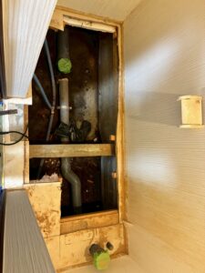 このままでは害虫の再発や衛生被害の拡大につながるため、トイレの一時撤去・床の一部解体・排水管の修繕・床下の清掃・害虫駆除薬の散布という複合的な作業を行うこととなりました。