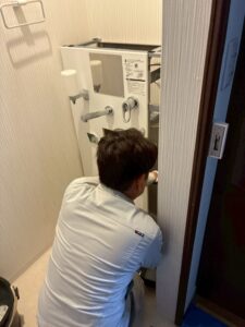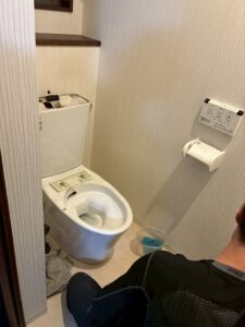 板を張り、トイレを戻す作業を行い、周辺が汚れていないかを確認してお客様へ。