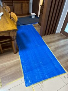 作業のため搬入するスペースには、万が一にも傷をつけたり汚したりしないよう、養生を行っておきます。