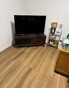 2枚目写真中央のベージュの床材のようなものは、床下作業用に敷いた養生ボードです。