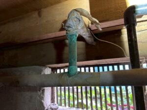 床下内の水道管が錆びていて、水漏れなどにより、シロアリが好む環境になるリスクがありました。