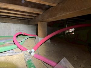 調査を進める中で、シロアリだけでなく、基礎の中性化や配管の水漏れなど、将来的なリスクにつながる要因が複数見つかりました。今回の工事により、床下環境の改善とともに、基礎の強度向上・湿気の抑制・配管の安全性確保まで対応することができました。