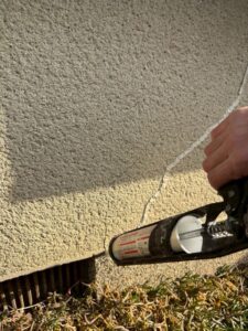 外壁部にあった割れ目(クラック)を変成シリコンで埋めていきます。