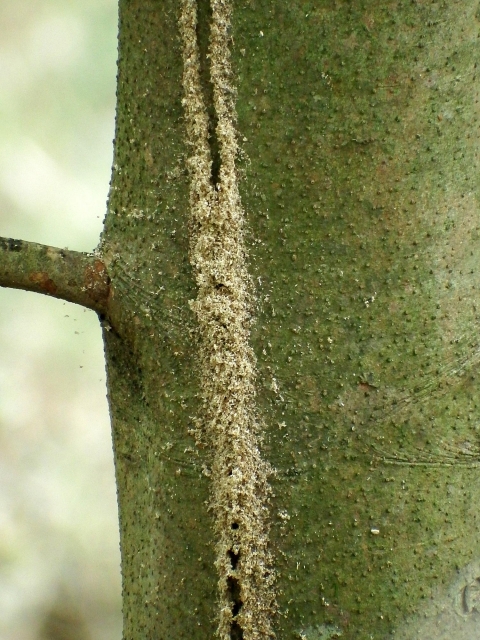 地表から空中へ伸びるシロアリの蟻道は、シロアリが食料源や新たな巣地を探索する際に作られる特徴的な構造です。空中に伸びた蟻道は地面の湿った環境から木の枝や建物の基礎部分へと伸び、シロアリが安全に移動するための保護された通り道を作ります。シロアリは空中に伸びた蟻道を利用して、地上の巣から食料源へ直接アクセスしたり、新しい巣地を確保したりします。
